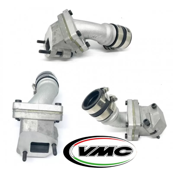 Cod.001401 Collettore aspirazione lamellare VMC per carburatori da 26 e 28 per Vespa 50 n, l, r, vespa 50 special, Vespa 125 Primavera, et3, fissaggio a due fori, per carburatori con attacco flessibile d.34mm. Corregge il malfunzionamento causato dall'usura della valvola di aspirazione.