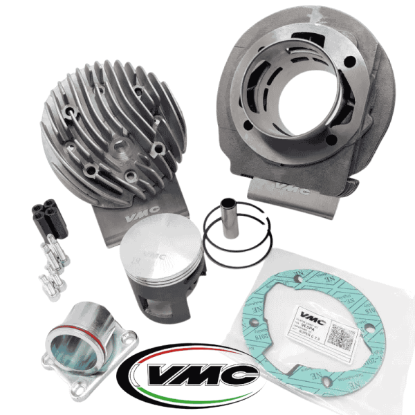 Scopri il Gruppo Termico VMC SUPER G 177cc: una soluzione all’avanguardia per prestazioni elevate e massima affidabilità. Questo motore, caratterizzato da una candela laterale, presenta un cilindro dotato di 7 travasi in ghisa, garantendo così una combustione ottimale e una distribuzione uniforme del calore. È caratterizzato da un alesaggio di 63 mm e corsa di 57 mm, per una cilindrata precisa di 177,59 cc. Il pistone in lega di alluminio bifascia si abbina perfettamente alla testa in alluminio in pressofusione, che dispone di 8 punti di fissaggio e di una guarnizione testa/cilindro O-ring in Viton.Il Gruppo Termico VMC SUPER G 177cc è ideale per applicazioni turistiche e sportive grazie alla sua efficienza e affidabilità.