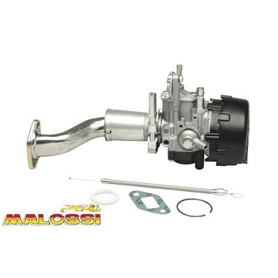 Cod. 1610645 Impianto alimentazione MALOSSI shbc20 rigido al carter per vespa 50, 125 primavera, et3. Il kit è completo di carburatore, collettore completo, filtro aria, filo per lo starter e anche le guarnizioni necessarie.